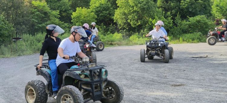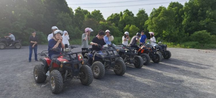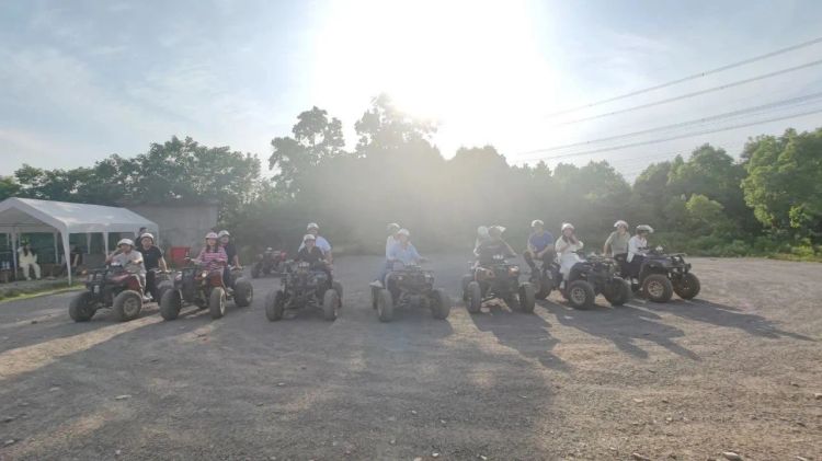 接著根據現場教練的安排下開始引導大家玩戶外競技運動。大家戴好頭盔加入了山地摩托車戰(zhàn)隊,在山間和樹林之間的賽道穿梭前行,開啟了叢林越野之路,有時山高水長路途險阻,有時一馬平川康莊大道,小伙伴們同時出發(fā),在互幫互助的照應下最終陸續(xù)到達了終點。