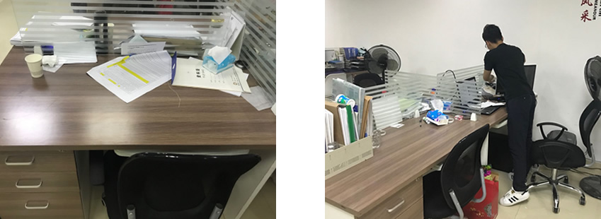 公共區(qū)域、會議室也都堆積著不同的雜物,員工也是默默的主動收拾,他們不斷的改善公司的環(huán)境,用實際行動展現(xiàn)了自身的文明風采和創(chuàng)建新欣環(huán)境的積極意識。讓我們來看看前后對比圖吧: